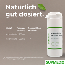 3 Kapseln enthalten: 900mg Glucosaminsulfat(**), 900mg Chondroitinsulfat (**)